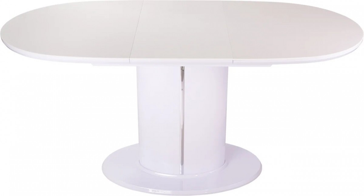Оснащен синхронно-раздвижным механизмом раскладки. Для того, чтобы разложить стол серии Румба достаточно потянуть за одну из половинок столешницы и установить вложенную в основание между столешницами вставку, сдвинуть полукрышки до упора и закрепить специальным зажимом.